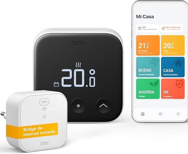 Ahorro energético: Optimiza el consumo de energía mediante programación y sensores que ajustan la temperatura según tu rutina y la presencia de personas en casa.